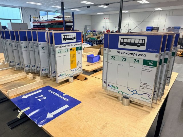 Deze biobased halteborden zijn gemaakt door de Verschilmakerij en Textline, en geassembleerd door Werkzaak Rivierenland, een organisatie in regio Rivierenland die zicht inzet voor mensen met een afstand tot de arbeidsmarkt.